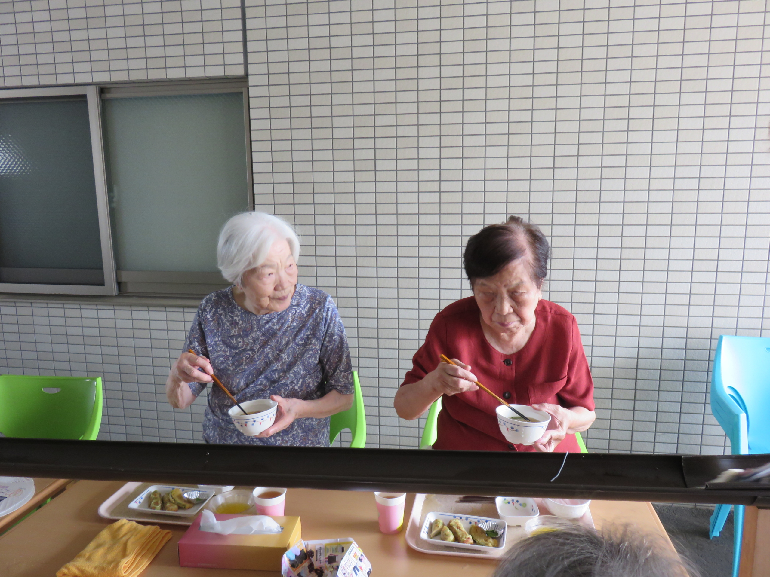 無事そうめん流しを終えて一息つかれている入居者様方。