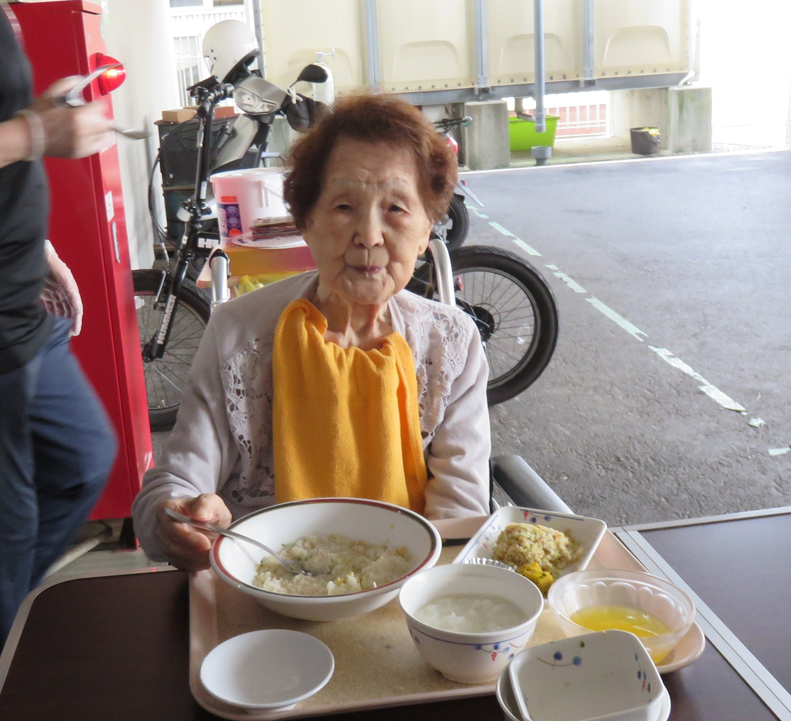 そうめんを召し上がられながら、カメラに顔を向けて下さった。入居者A様。